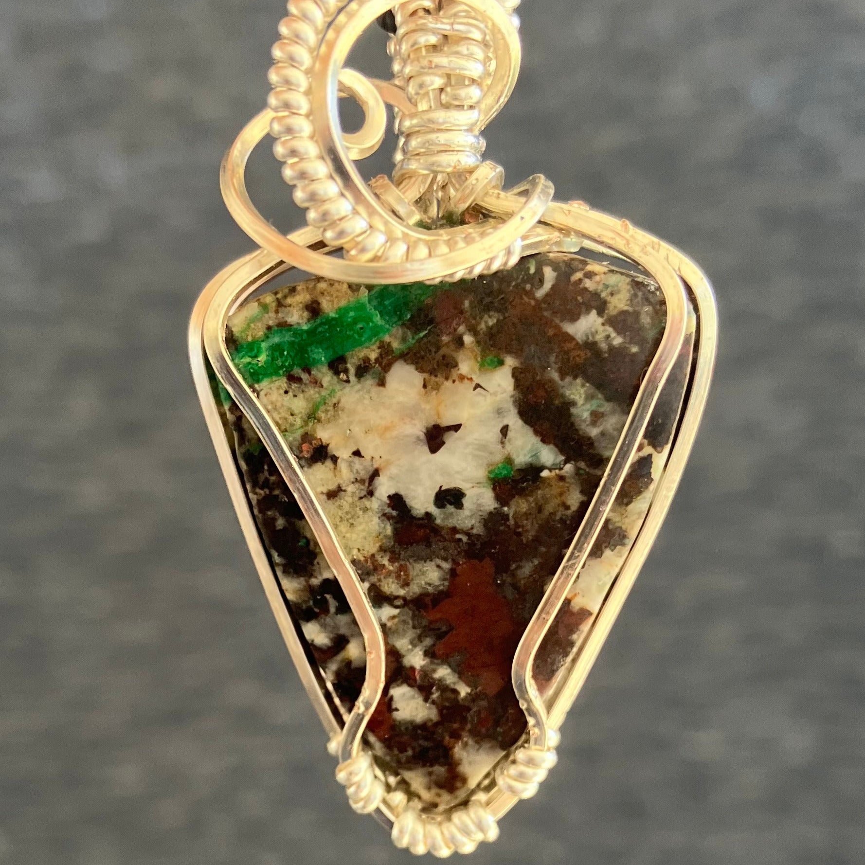 Hermoso Colgante Hecho a mano de Cuarzo-Jaspe con veta de Malaquita verde